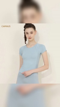 This women's short-sleeved T-shirt features a refined light blue color and a classic crew neckline design. Crafted from soft, breathable fabric with vertical ribbed texture, it ensures all-day comfort while maintaining a sleek silhouette. The minimalist aesthetic, enhanced by clean lines and subtle structural seams, makes it a versatile wardrobe staple.