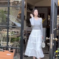 This elegant white tiered skirt features a loose, breathable fabric with delicate lace detailing. The soft elastic waistband ensures a comfortable fit, while layered ruffles cascade gracefully from the waist to the hem, adding dimension and movement. Designed for versatile styling, it combines femininity with casual charm.