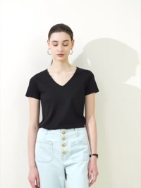This minimalist V-neck short-sleeve T-shirt features premium cotton fabric with superior breathability, offering all-day comfort. The sleek silhouette and signature deep-V neckline balance timeless elegance with modern style, exuding understated sophistication.