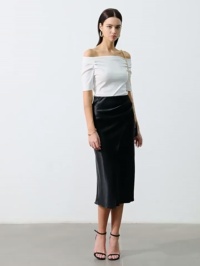 Elevate your wardrobe with our versatile off-shoulder mid-sleeve top, crafted from premium soft fabric for all-day comfort. Designed with a sleek black finish, it features a flattering neckline that accentuates your collarbone and shoulders. Pair effortlessly with high-waisted trousers or skirts for a chic, tailored look.