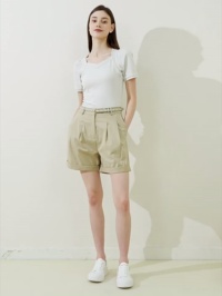 This women's short-sleeved top combines timeless elegance with modern comfort. Crafted from high-quality fabric, it features a sophisticated square neckline with a subtle V-shaped inset, adding a touch of femininity. The flared puff sleeves at the shoulders create a flattering silhouette, while the tailored fit ensures both style and ease of movement. Available in classic off-white and versatile black, this versatile piece transitions effortlessly from casual to chic.
